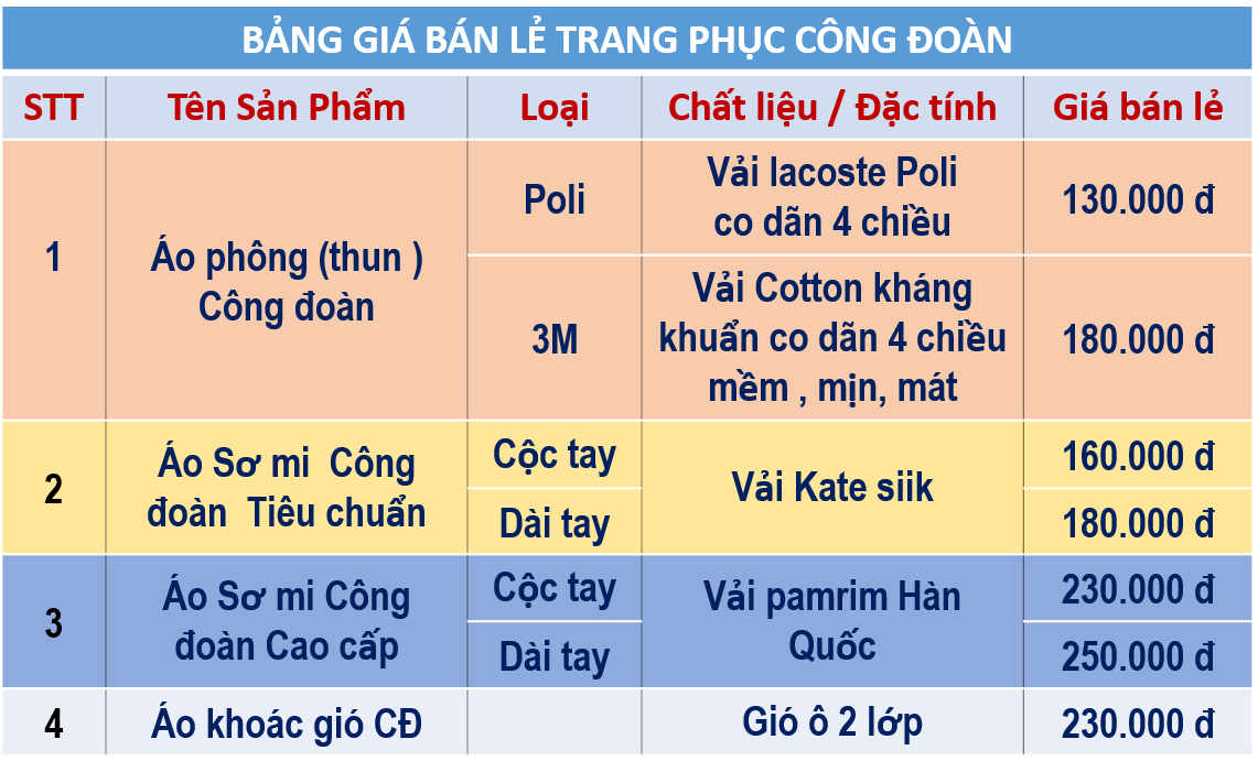 Bảng Giá Áo Công Đoàn Tại Xưởng