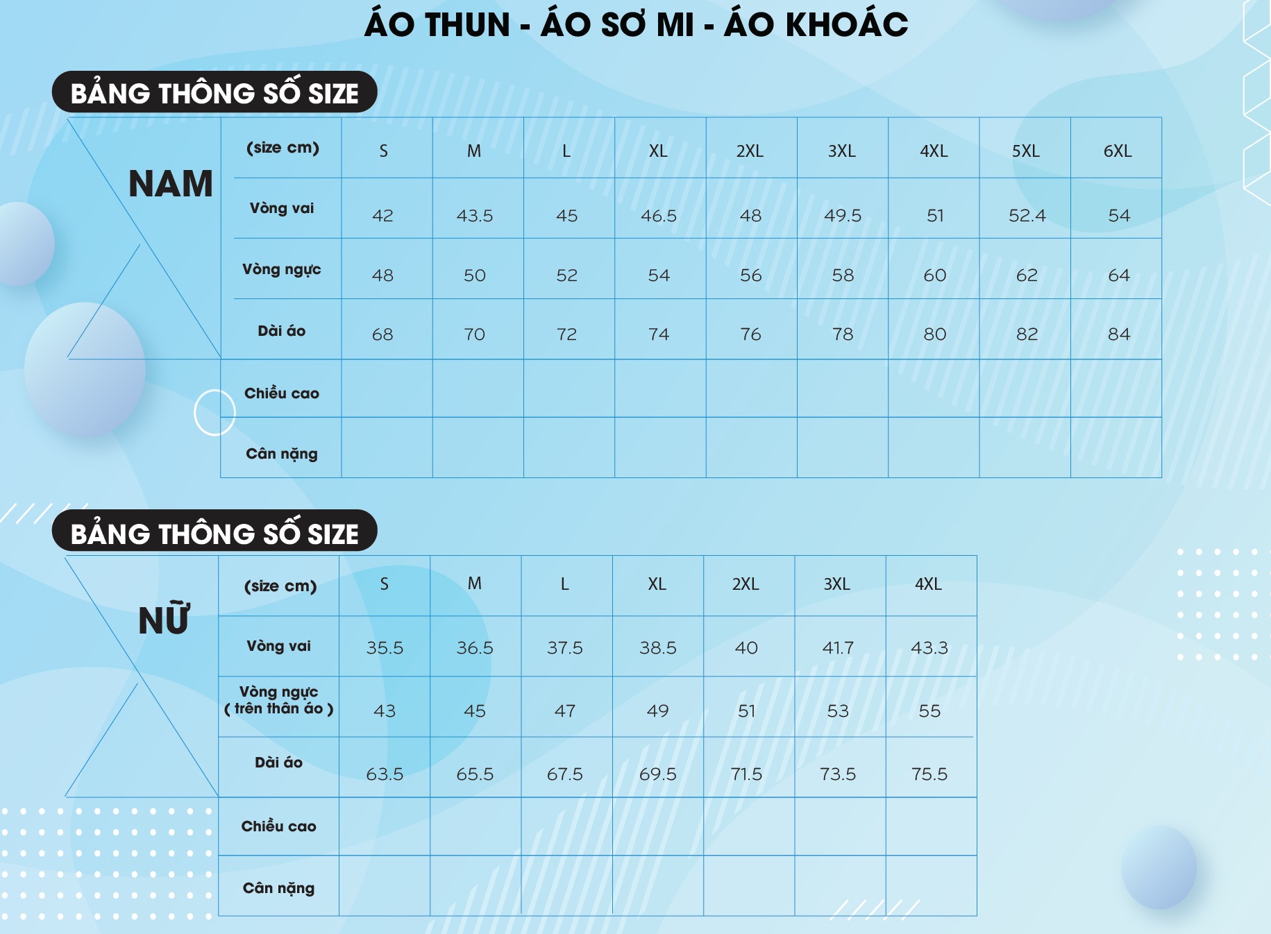 Bảng size áo Công Đoàn