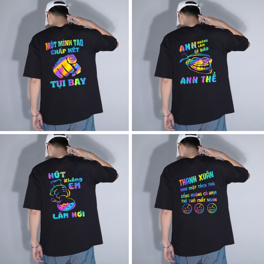 - Áo thun phản quang bẩy màu là loại khi chụp ảnh sẽ ánh lên bảy sắc cầu vồng. Cả hai loại áo này đầu những loại áo thuộc dạng uni sex form rộng nên phù hợp cho cả nam và nữ cùng mặc.