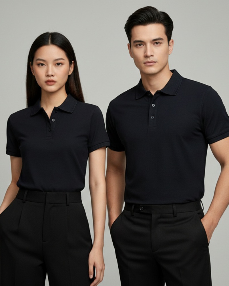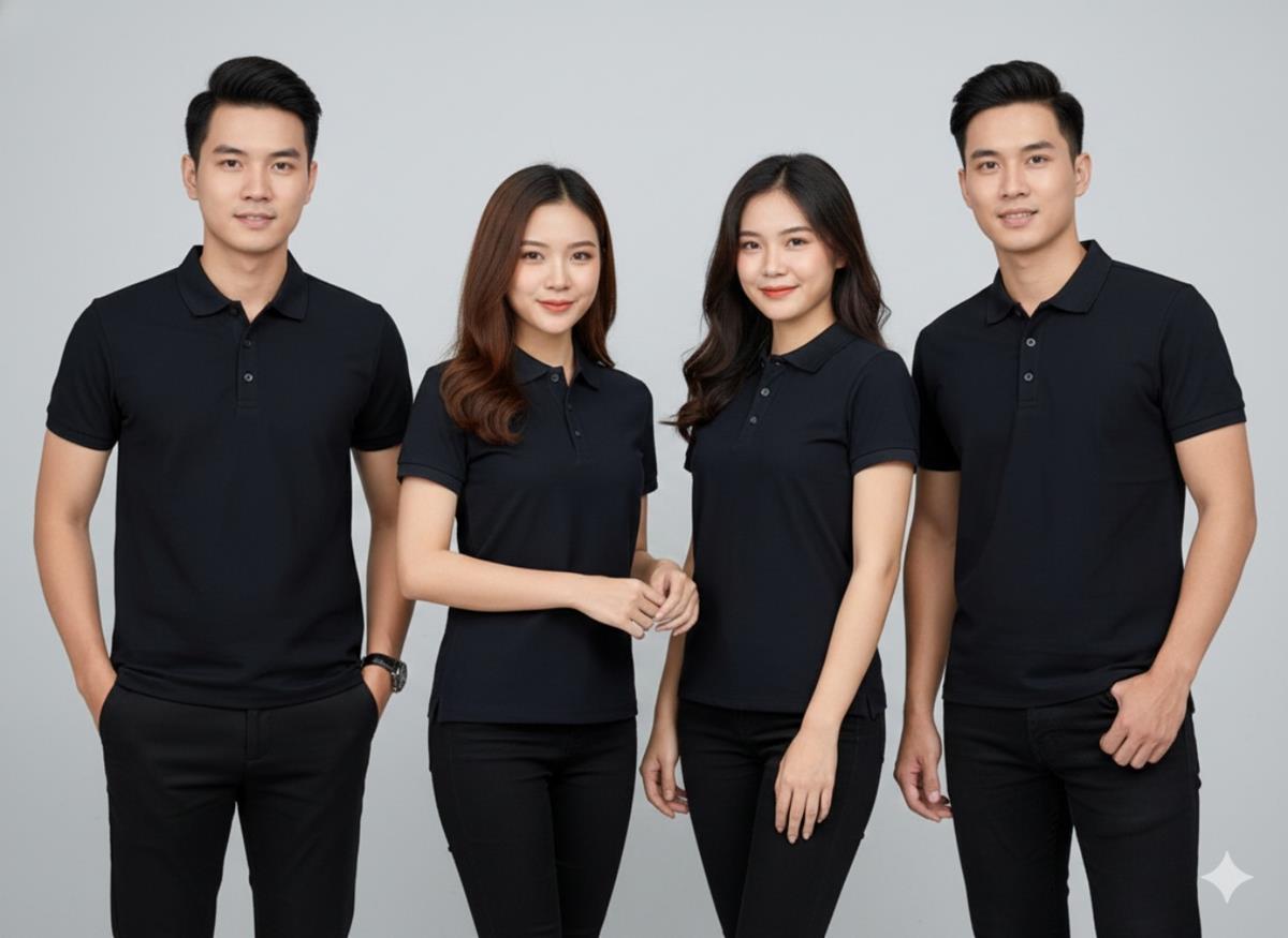 Áo thun Polo Đồng Phục Cao Cấp màu đen với chất liệu vải Cotton 100%, co giãn 4 chiều không xù lông, thiết kế đẹp, có đủ màu sắc, đủ size từ bé đến người lớn.
