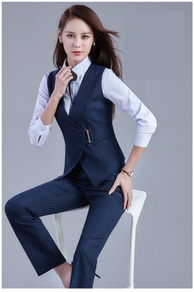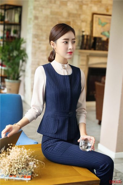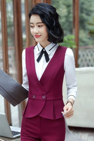 Đối với nữ: áo gile công sở được thiết kế với cách điệu nhẹ nhàng ở phần nhún vai và thường được phối cùng với chân váy hoặc quần tây nữ cùng màu. Set trang phục gile công sở nữ giúp cho phái đẹp tự tin về vóc dáng và trông quyến rũ hơn rất nhiều.