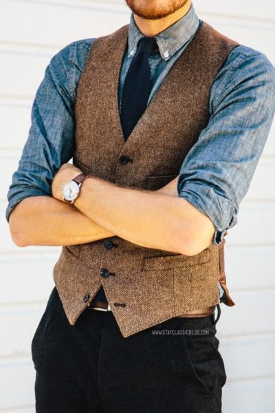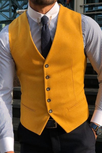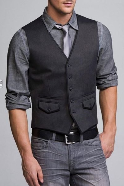 Đối với nam: áo gile công sở thường được thiết kế với các chi tiết túi ở phần bụng, thường là màu trơn tối hoặc kẻ sọc kết hợp với chiếc áo bành tô rộng. Kiểu phối này giúp cho các quý ông trông lịch lãm và sang trọng hơn.
