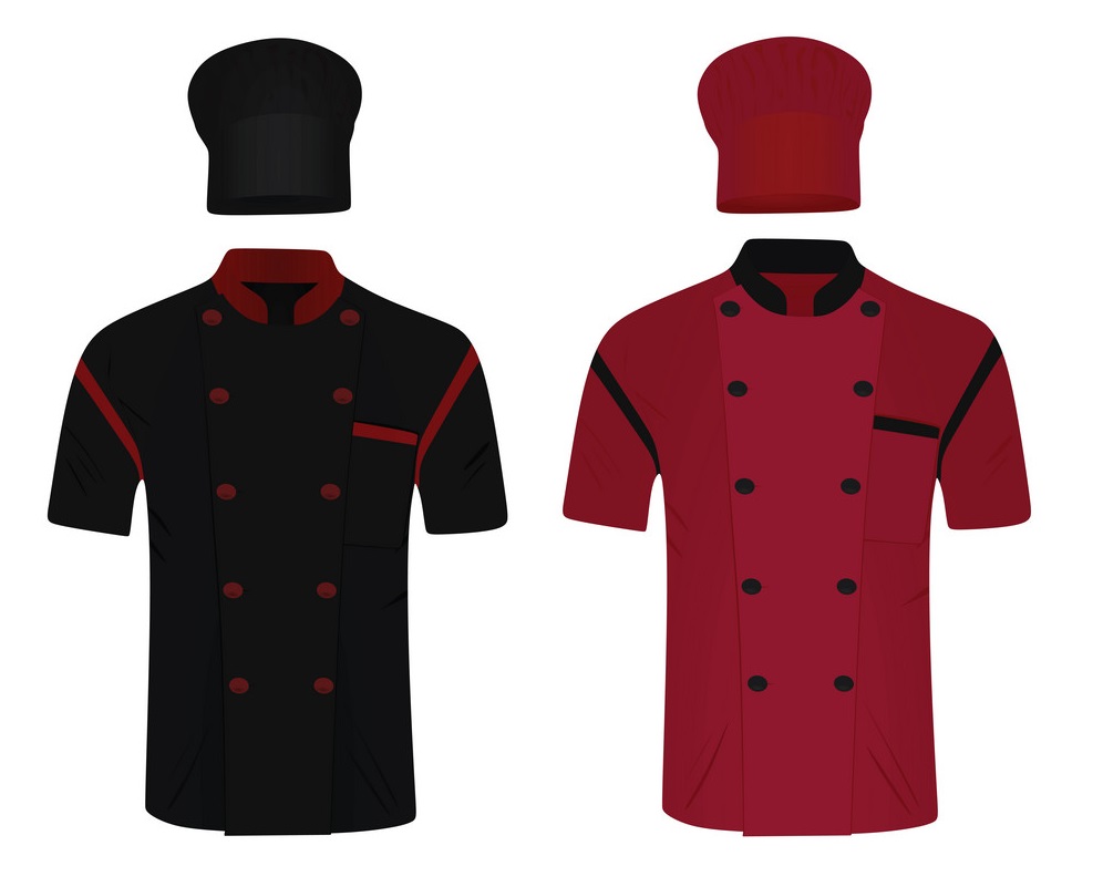 Áo bếp: hai loại (dài tay và ngắn tay), màu sắc chủ đạo là trắng, đen hoặc đỏ.