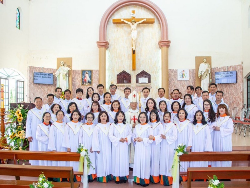 Áo công giáo xây dựng hình ảnh đẹp cho Giáo xứ: Áo đồng phục thể hiện tinh thần phục vụ và đức tin Công giáo. Logo, khẩu hiệu, thánh giá và tràng hạt trên áo giúp nâng cao hình ảnh của Giáo xứ.