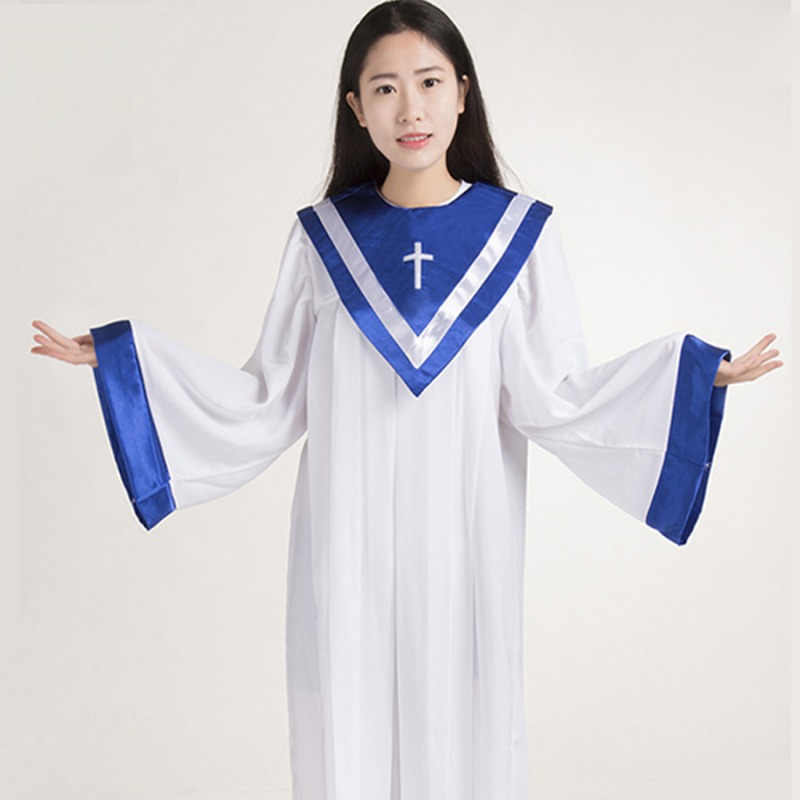 Mẫu đồng phục dài truyền thống trong công giáo mang đặc điểm đặc biệt đáng chú ý. Thường được sử dụng trong các ngày lễ trọng và trong ca đoàn công giáo, mẫu áo này có thiết kế dạng khăn choàng trước cổ và kiểu dáng suông xếp ly, dài xuống đến mắt cá nhân, tạo nên vẻ trang trọng cho bộ trang phục.