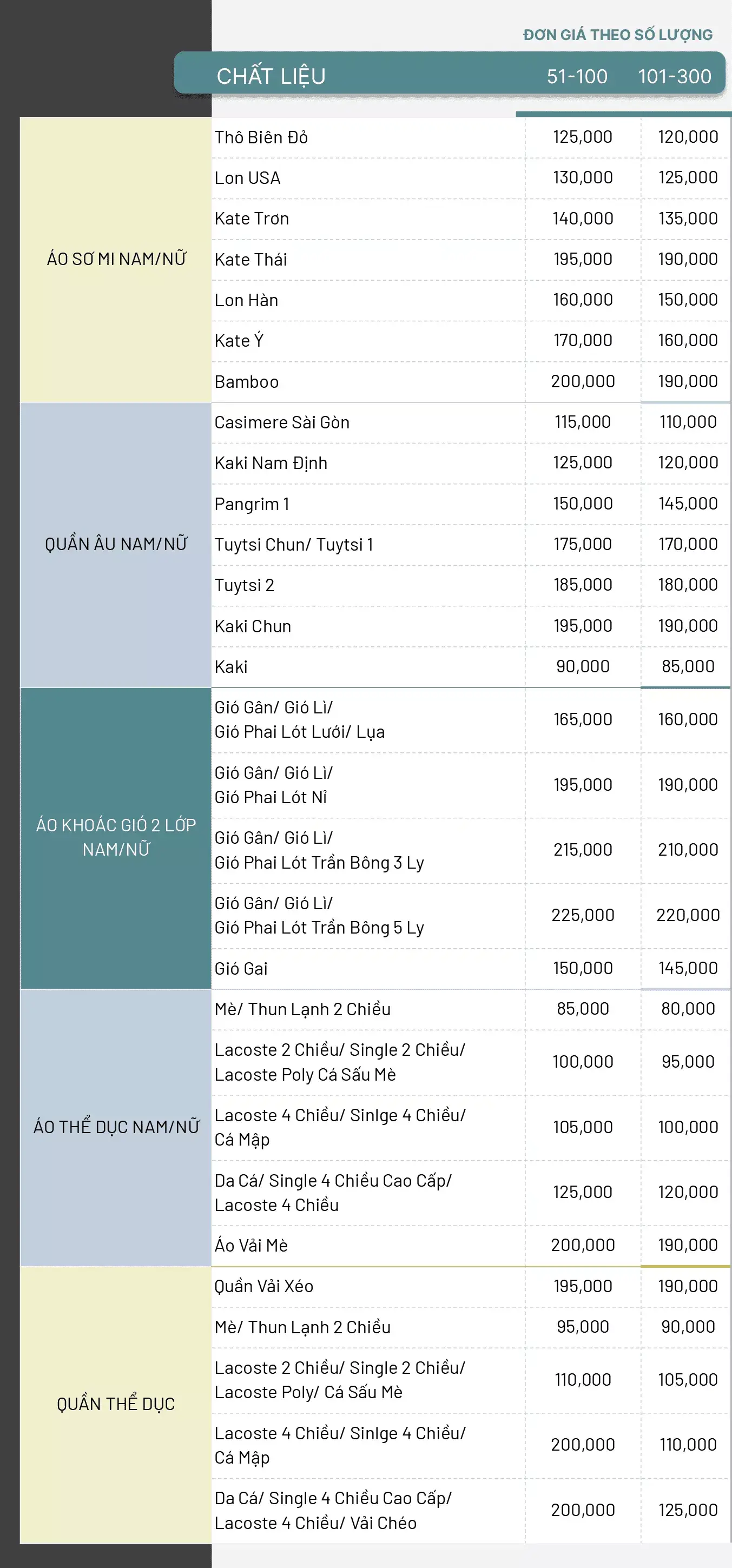 Tham khảo bảng giá tại xưởng Trang Anh sau đây: