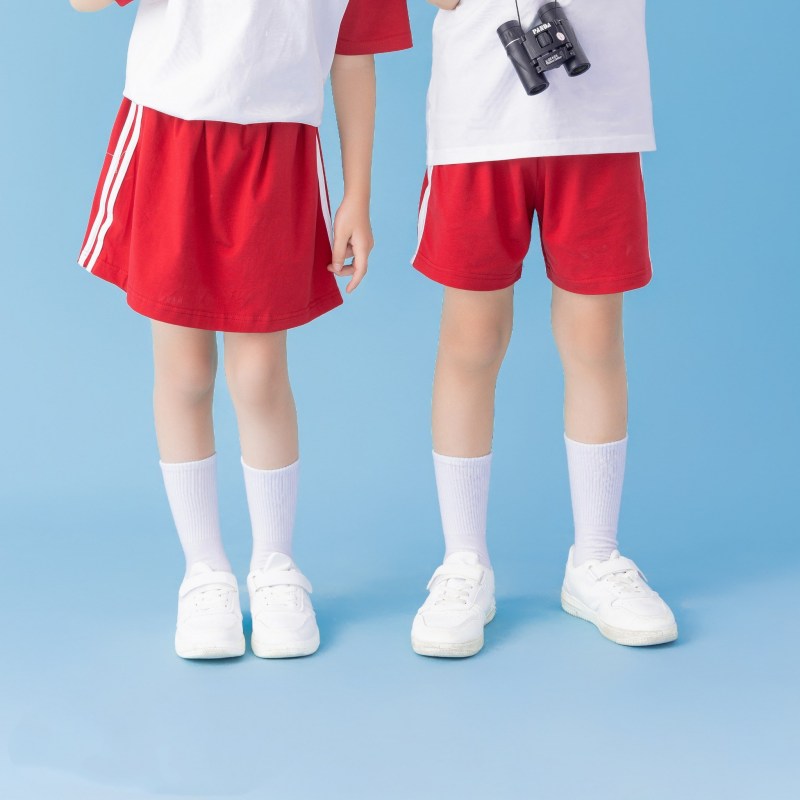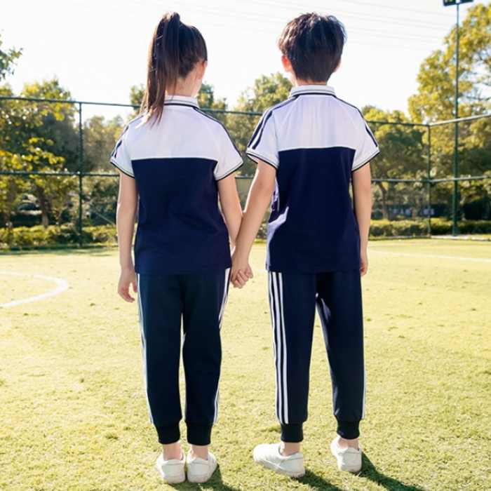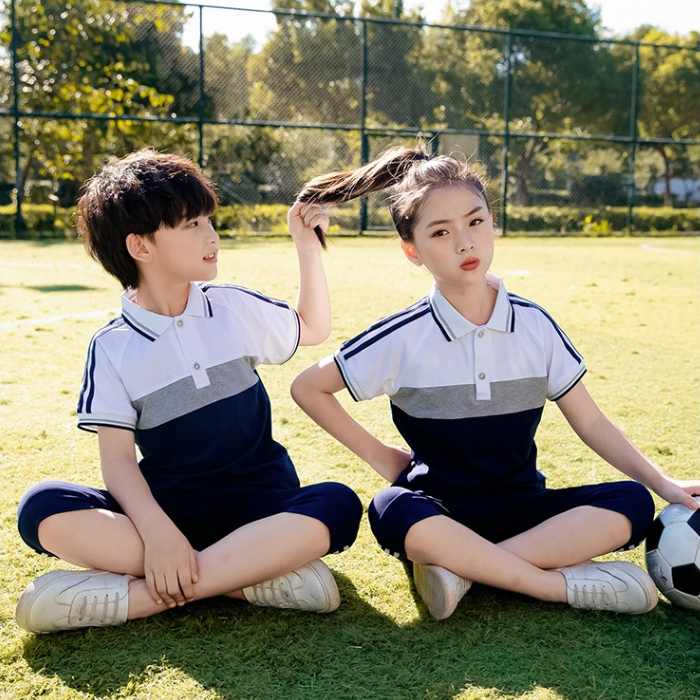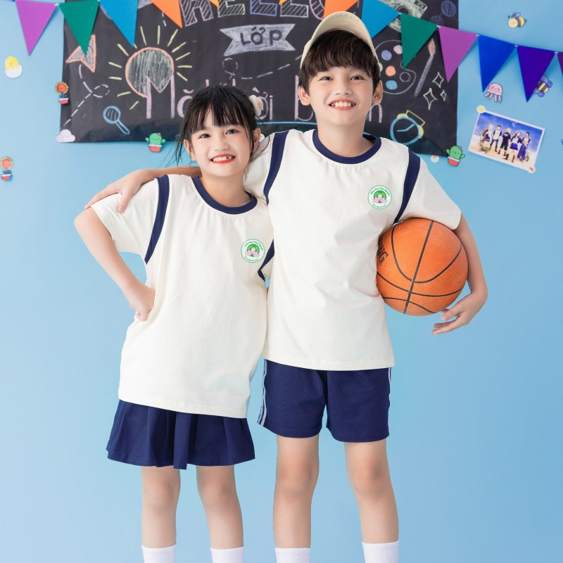 Mẫu đồng phục áo quần thể dục khỏe khoắn: Các bé trai cấp 1 cần chọn bộ đồ đồng phục thể dục với chất liệu vải thoáng mát, đàn hồi và thấm hút mồ hôi tốt như cotton, kaki, nylon, polyester để cảm thấy thoải mái khi vui chơi chạy nhảy trong giờ học thể dục.
