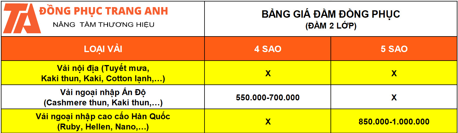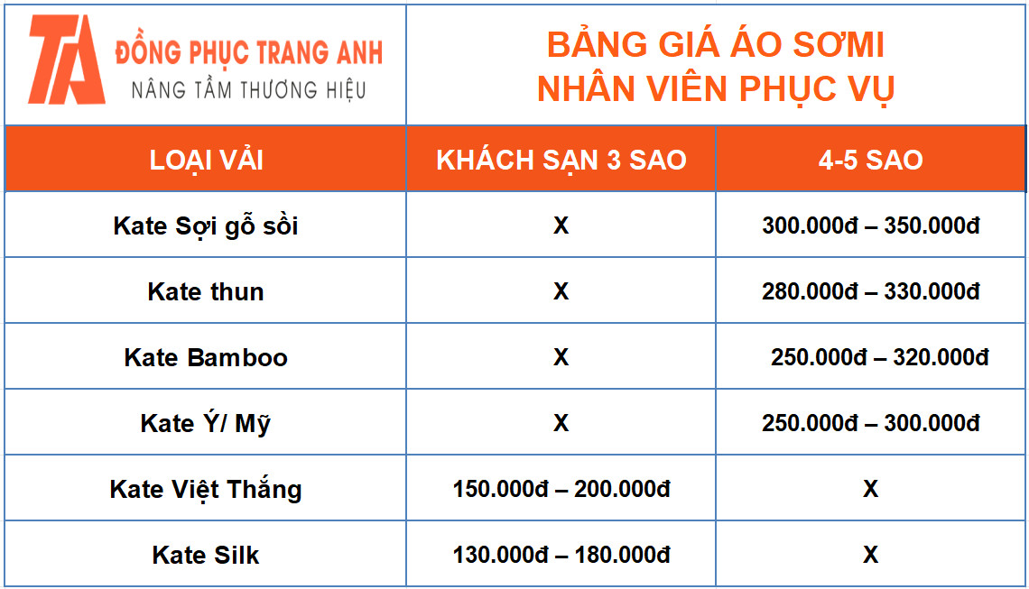 Bảng giá may đồng phục khách sạn trọn gói, theo yêu cầu tại Xưởng Trang Anh
