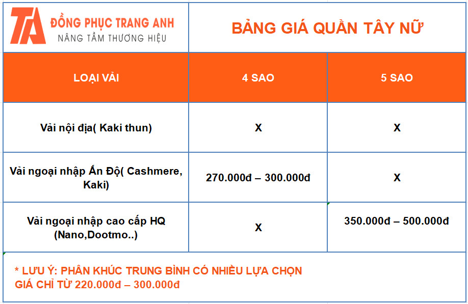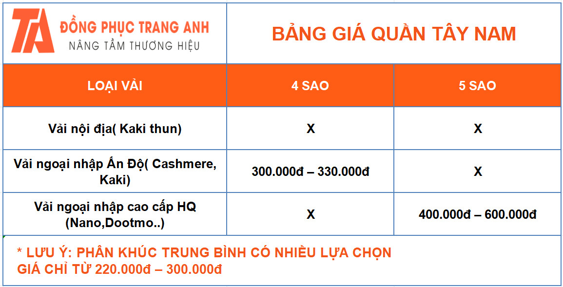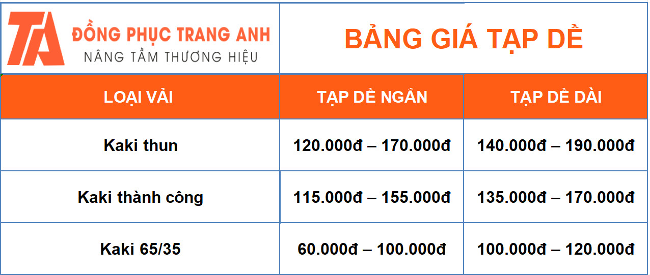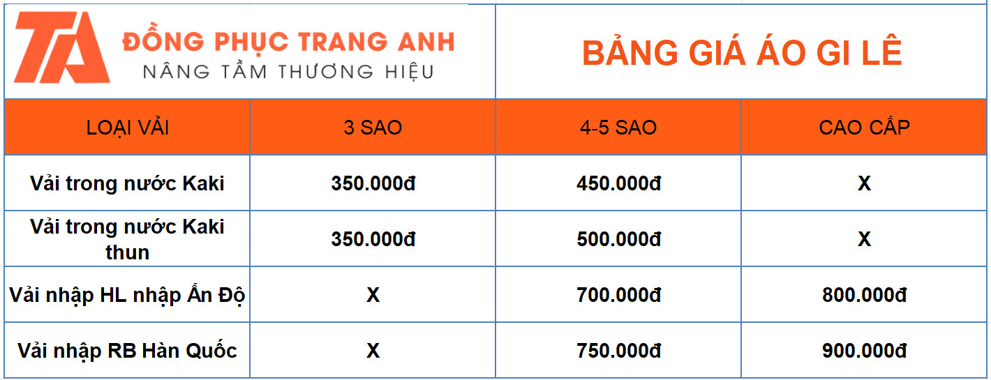Lưu ý: Chi phí may dựa các yếu tố như số lượng, chất liệu, kiểu dáng.